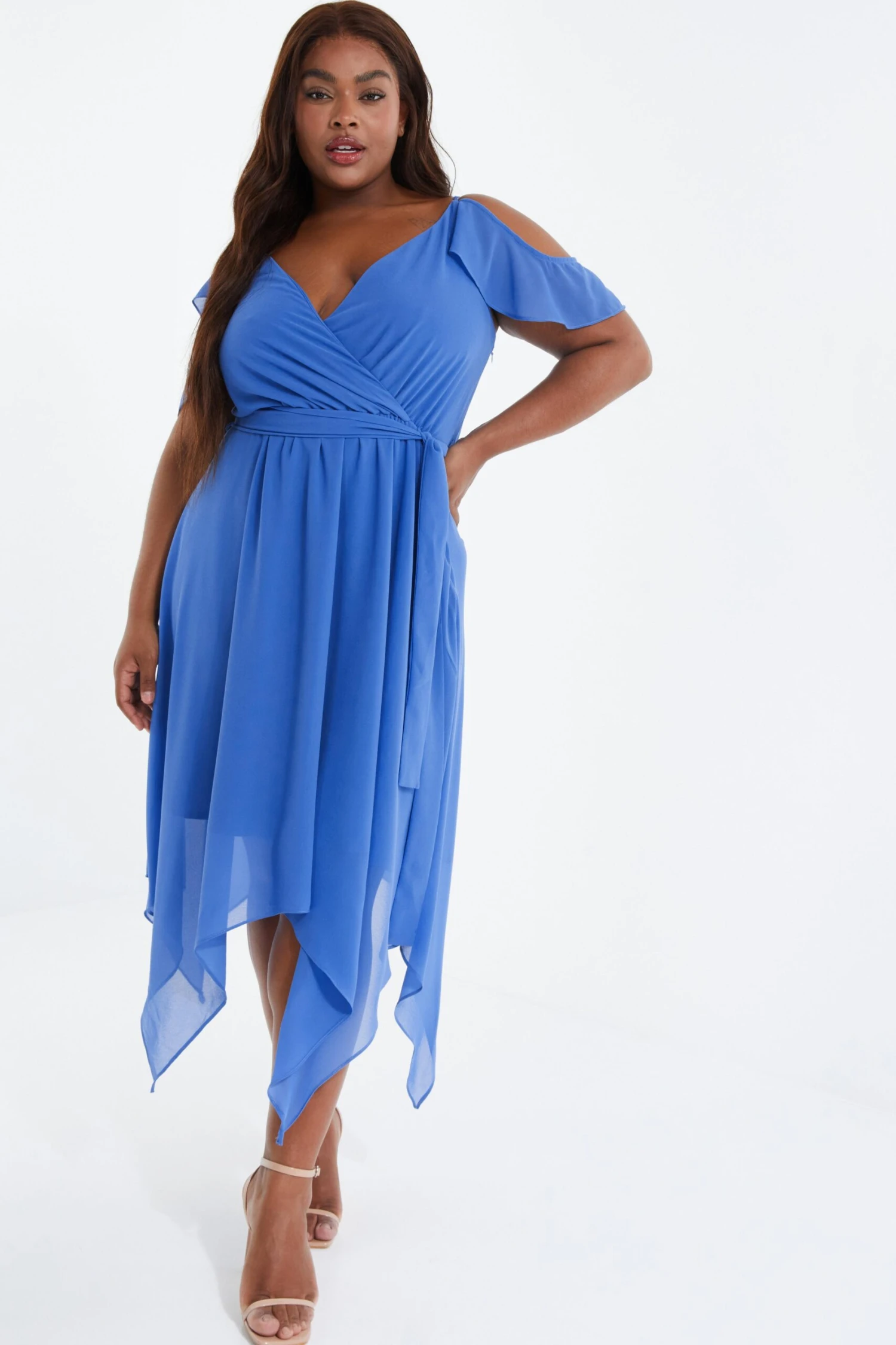 Curve Blue Cold Shoulder Midi Dress
